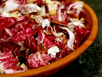 Red & White Salad with Candied Pecans, Figs and Chevre